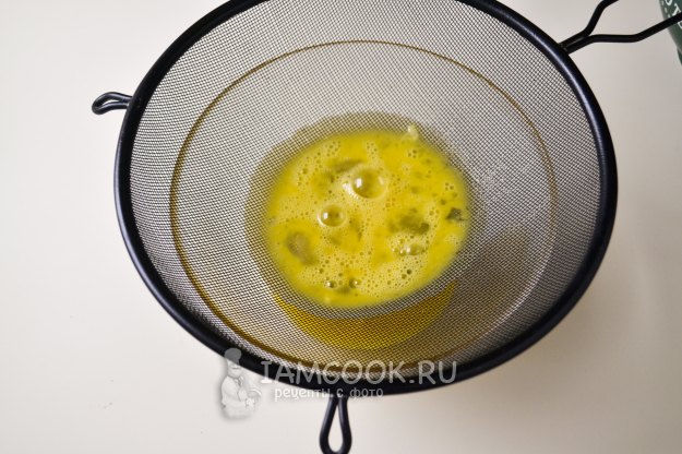 Взболтанные яйца можете процедить через сито. Вообще, этот шаг можно пропустить, так что это по желанию.