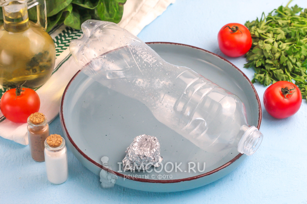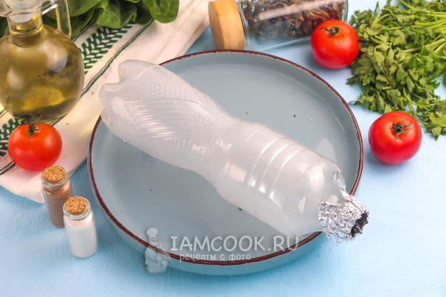 Вам потребуется пустая 0,5 л пластиковая бутылка. Из фольги сделайте крышечку с небольшим углублением в саму бутылку. В углублении пробейте 4-5 отверстий крупной иглой, чтобы дым попадал в бутылку.