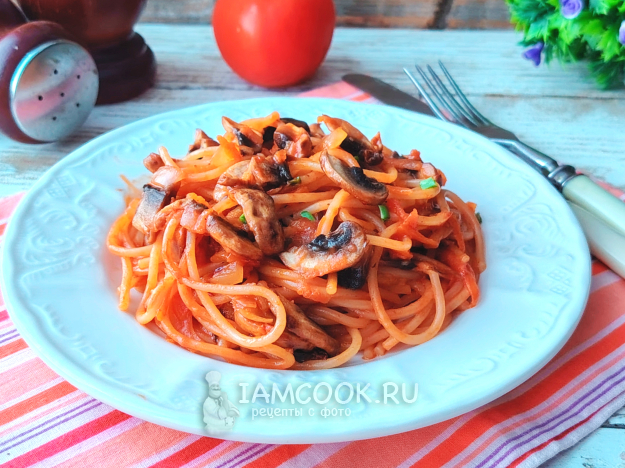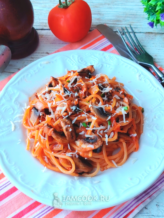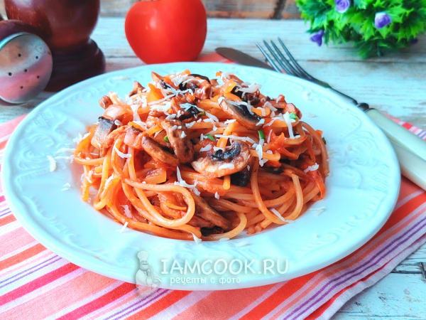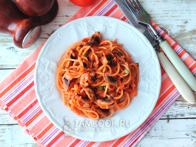 Паста с томатной пастой и грибами готова.