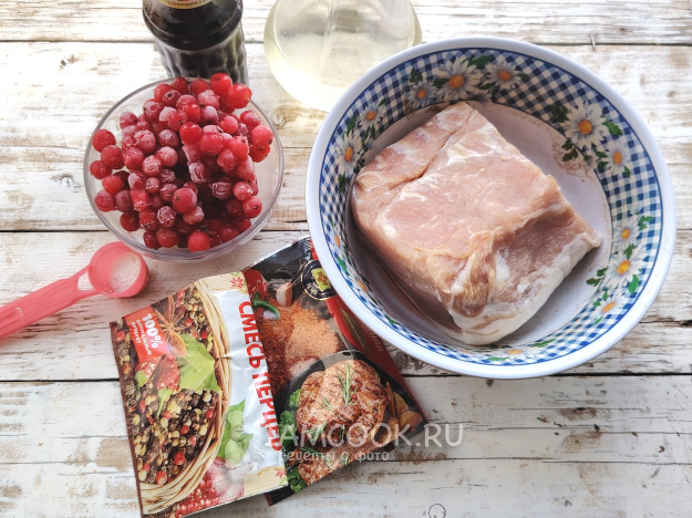Собрать по списку продукты для приготовления мяса с красной смородиной.