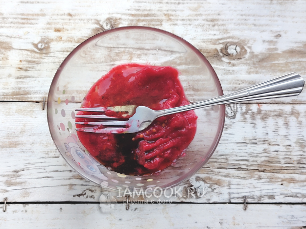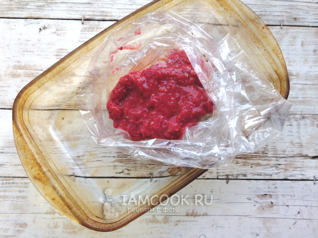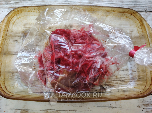 Нанести ягодную смесь на мясо, мясо поместить в рукав для запекания.