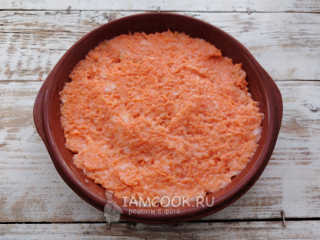 Выложить морковное тесто в смазанную маслом форму и отправить в разогретую до 180 градусов духовку на 35 минут.
