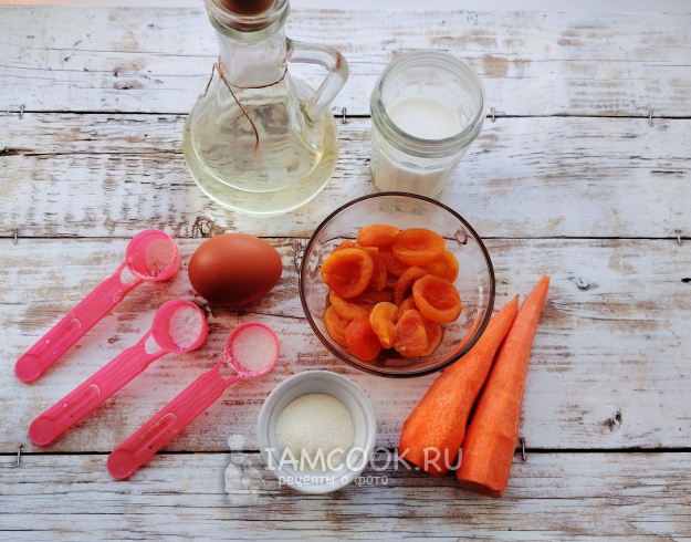 Собрать по списку продукты для морковной запеканки с курагой.