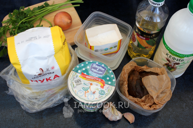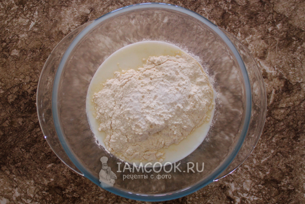 Для теста соедините кефир комнатной температуры с мукой, содой и солью.