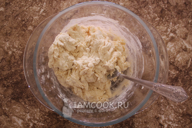 Перемешайте, чтобы ингредиенты схватились. Кефир бывает разной густоты, да и мука тоже может разниться по своим свойствам.