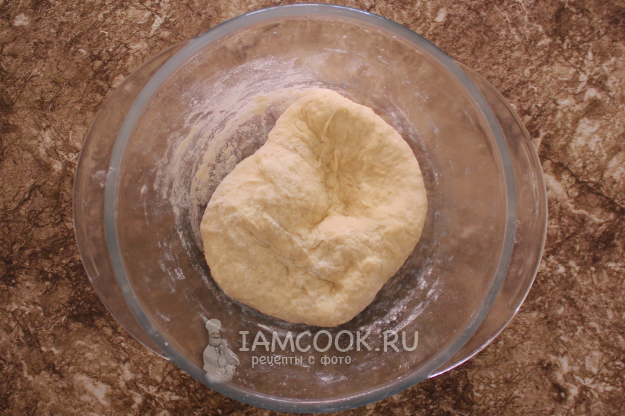 Откорректируйте тесто, добавляя муку или кефир... Смажьте руки растительным маслом и замесите однородное, пышное и подвижное тесто.