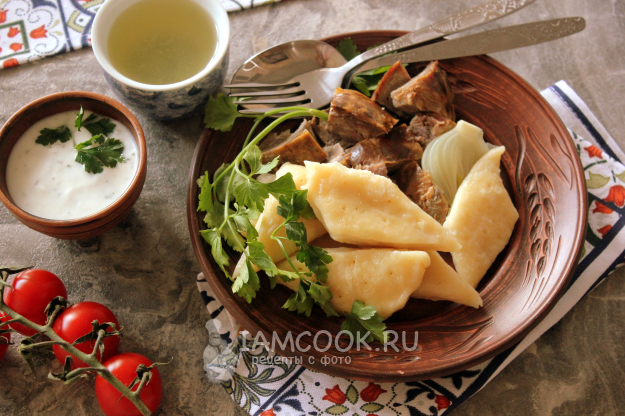 Для одного из аварских вариантов хинкала подготовьте ингредиенты по списку к рецепту. Сушеные колбасы доступнее, т.е. легче встретить в продаже, из говядины, а подходит и баранина. Количество может варьироваться, это зависит от того, хотите вы колбасу с хинкалом или хинкал с колбасой.