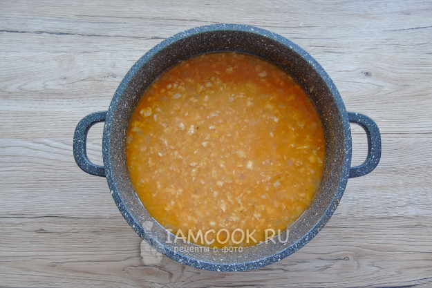Красную или желтую чечевицу тщательно помойте и выложите в кастрюлю.