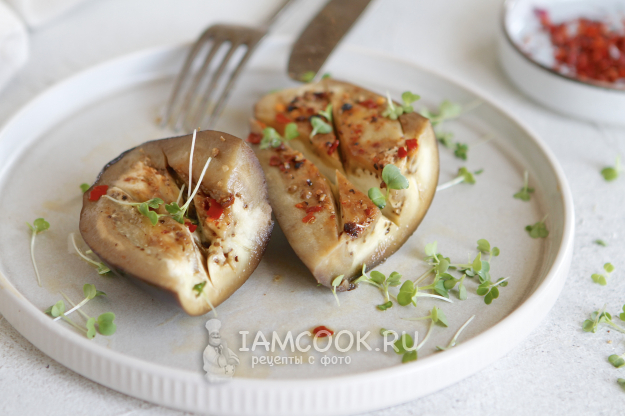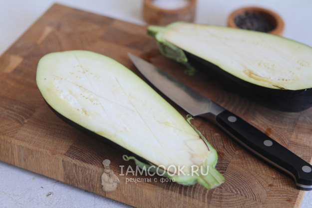 Баклажаны промойте и обсушите бумажным полотенцем. Разрежьте вдоль и сделайте крестообразные надрезы.