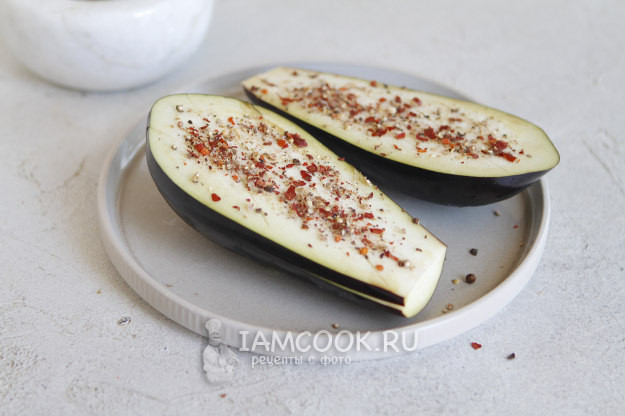 Посыпьте специями баклажаны.