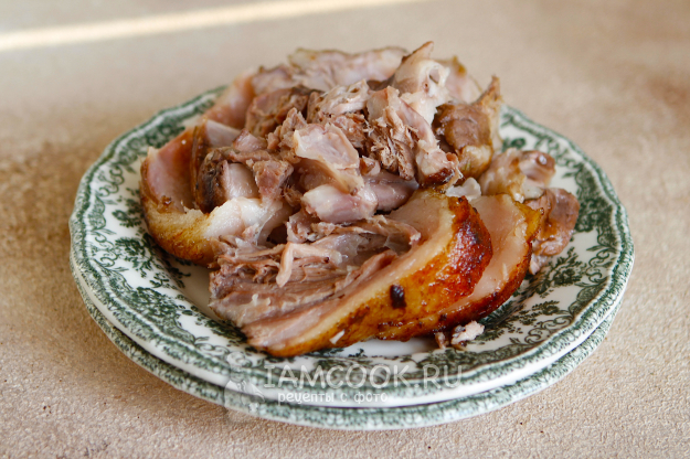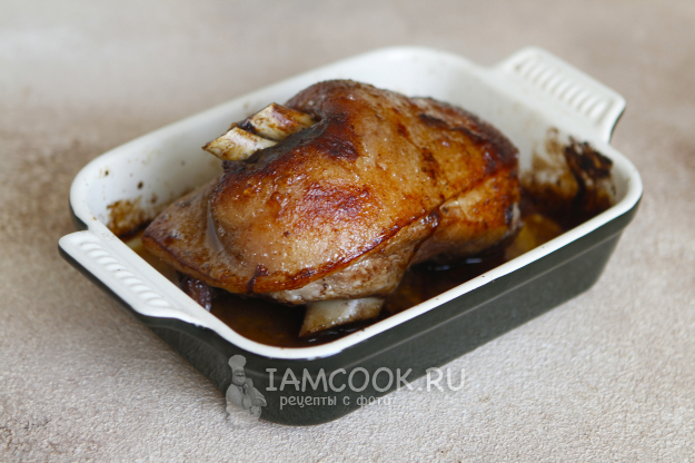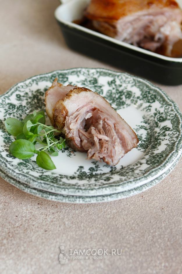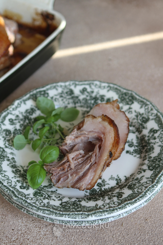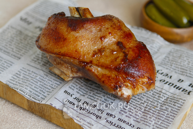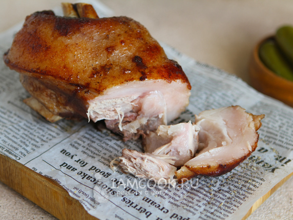 Свиная рулька сувид (су-вид) готова. Посмотрите, какая она аппетитная. Мясо сочное, мягкое, оно буквально тает во рту. От одного вида у меня уже текут слюнки)))