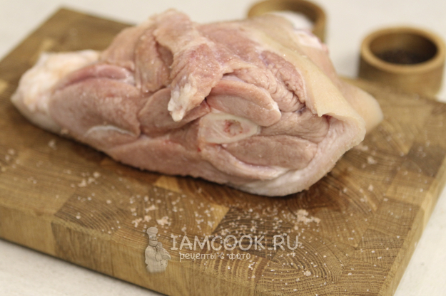 Свиную рульку я покупала на рынке. Вес ее вышел 1430 кг. Продавца заранее попросила порубить ее, так как предполагала, что целиком она в пакет не поместится.
