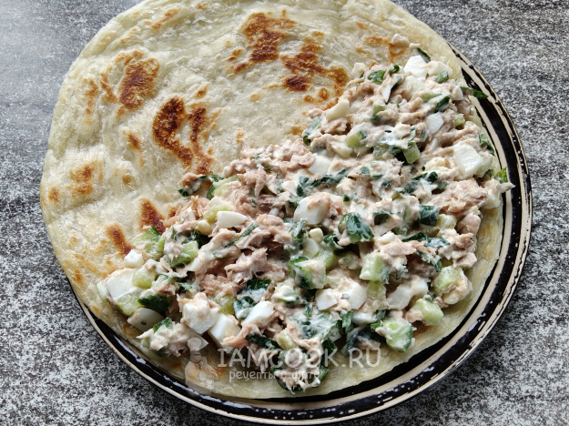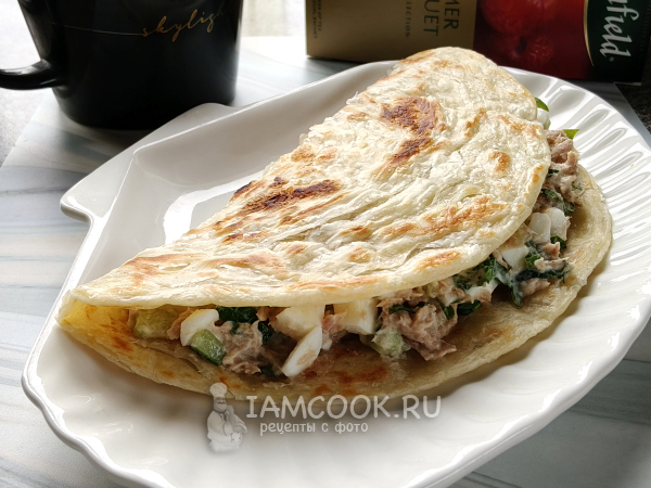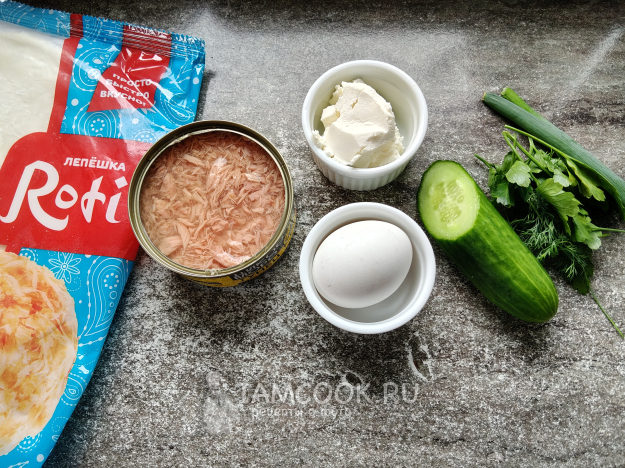 Возьмем необходимые ингредиенты и приступим к приготовлению лепешки роти с тунцом.