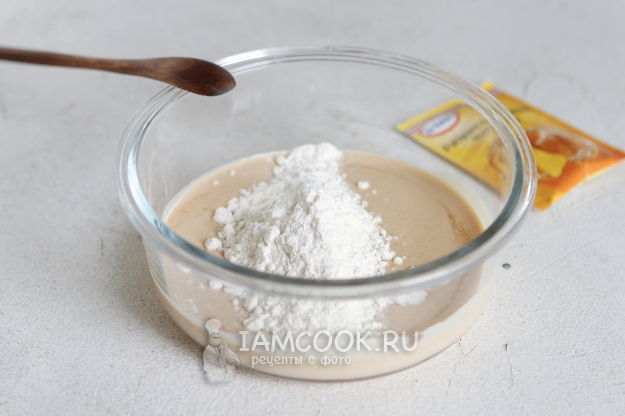 Вмешайте муку в ряженку и замесите плотное тесто, без комочков.