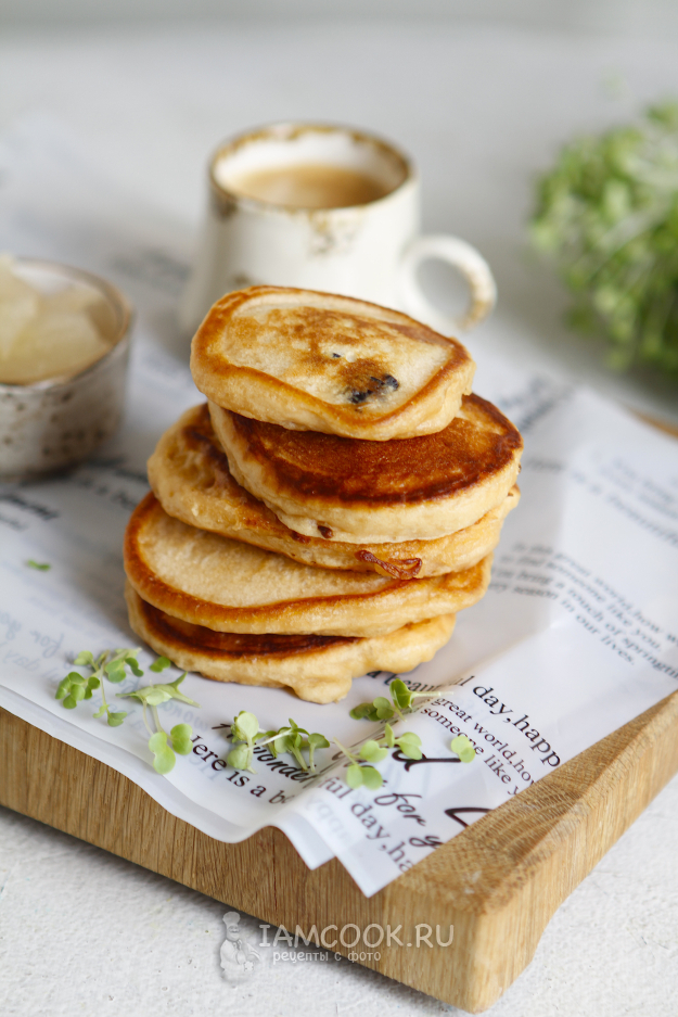 Оладьи с изюмом на ряженке готовы. Они получились очень вкусными и нежными.