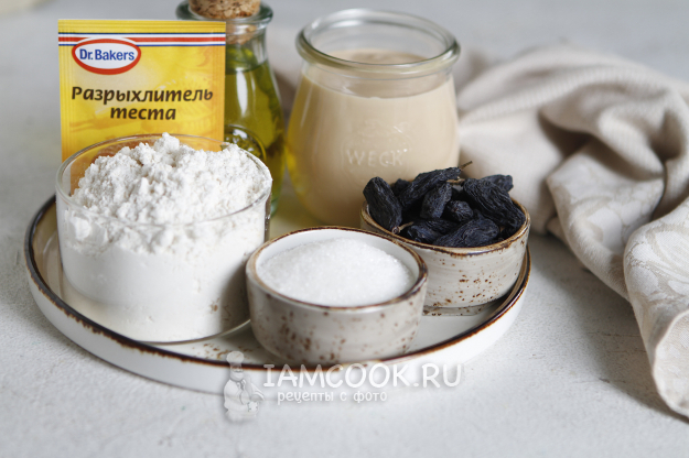 Соберите все продукты по списку и приступим к приготовлению оладий на ряженке с изюмом.