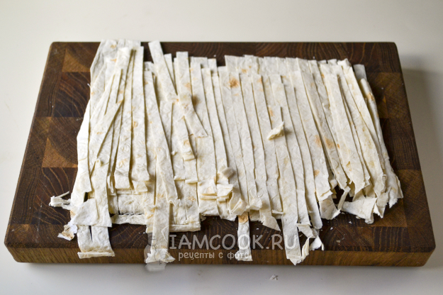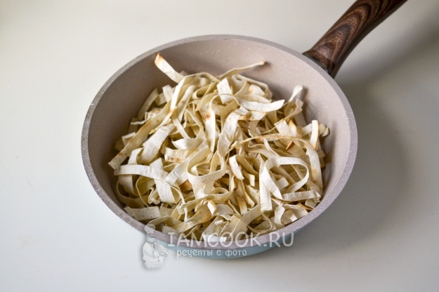 Подсушите-поджарьте лаваш на сухой сковороде.