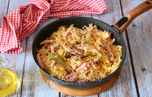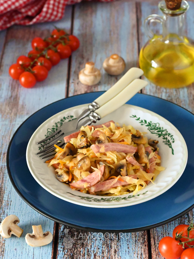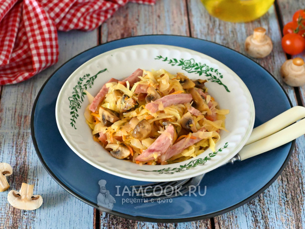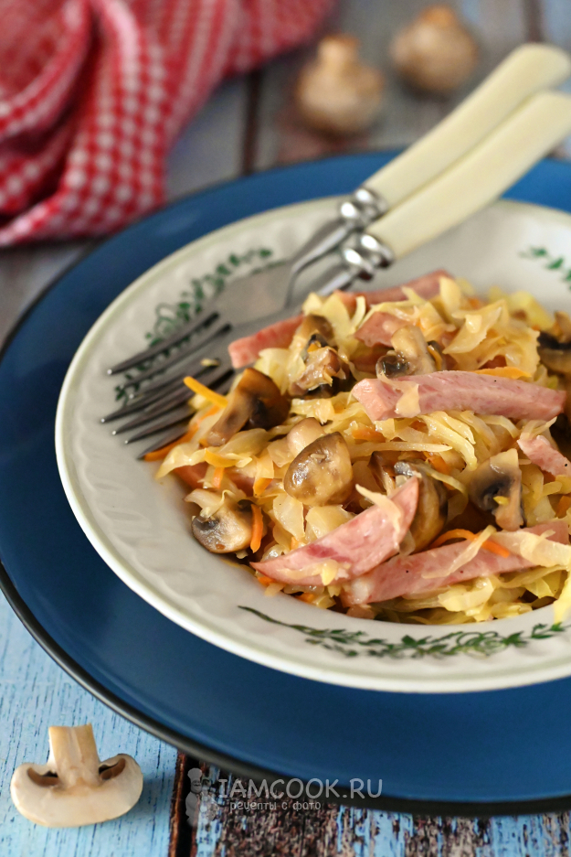 Тушёная капуста с грибами и колбасой удалась на славу!