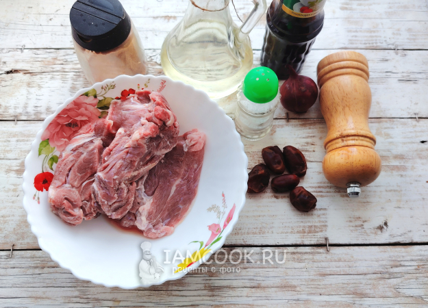 Собрать по списку продукты для приготовления мяса с финиками.