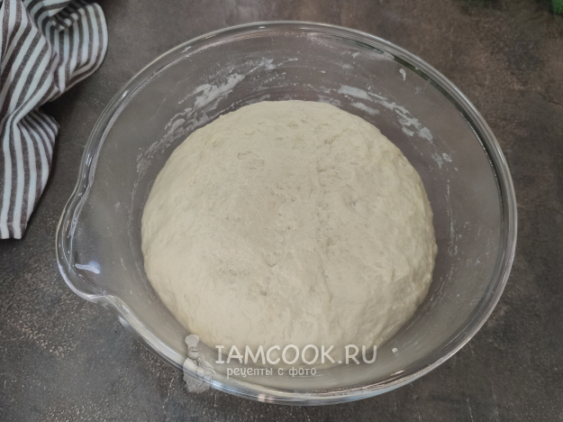 Тесто поднялось, его обминаем, оставляем подняться снова.