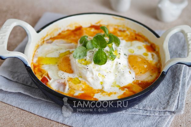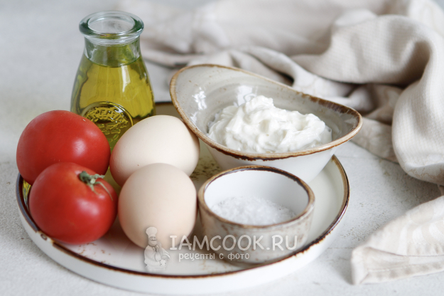 Соберите все продукты по списку и приступим к приготовлению шакшуки со страчателлой. Сковорода у меня маленькая, подача порционная, поэтому я готовила шакшуку только из двух яиц. Если планируете готовить шакшуку на 2-3 человека, соответственно, берите больше яиц и помидоров.