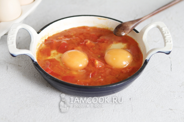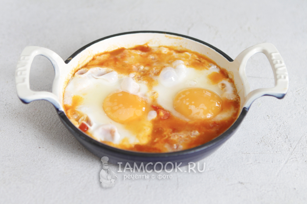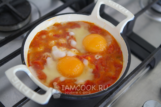 Убавьте огонь и готовьте шакшуку на самом слабом огне еще примерно 5-7 минут.