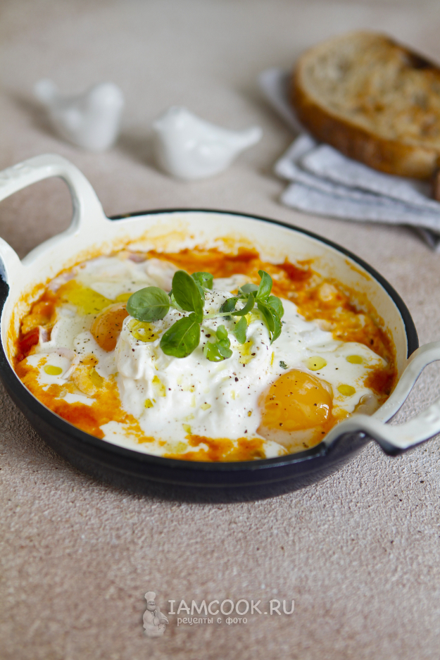 Шакшука со страчателлой готова. Обязательно подавайте с кусочком поджаренного тоста. Поверьте, это ну очень вкусно!