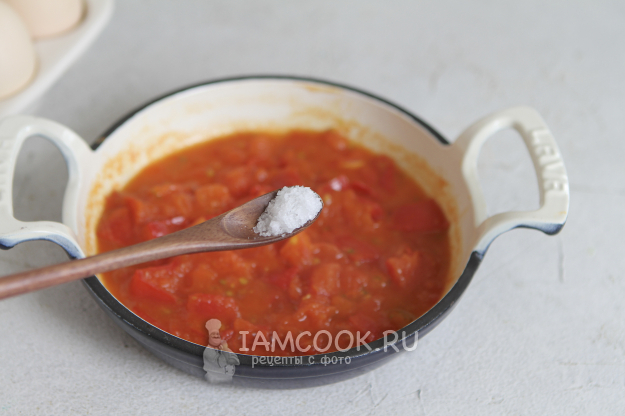 Жидкость я максимально выпарила и оставила только лишь мякоть. Слегка посолите помидоры.