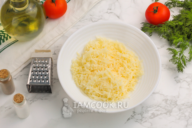 Сразу же натрите твердый сыр на терке с мелкими ячейками.