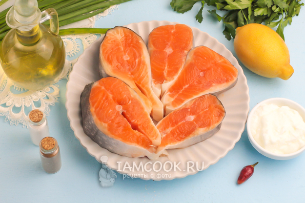 Промойте стейки в воде и обсушите бумажными салфетками.