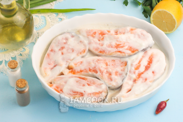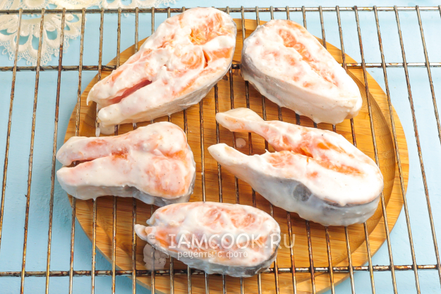 Обваляйте в маринаде приготовленные части кеты со всех сторон и оставьте минимум на 30 минут, а лучше - на 1-2 часа. Дольше красную рыбу мариновать не нужно.