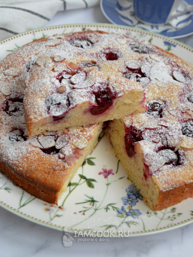 При желании можно слегка посыпать сверху сахарной пудрой. Итальянский пирог с маскарпоне и вишней получается с очень нежной текстурой и приятной вишневой кислинкой. Приятного аппетита!