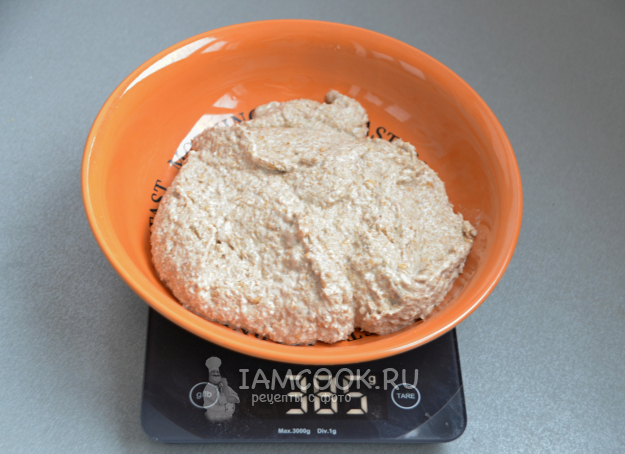 Измерьте полученную массу. При замачивании было 160 г зерна, в окончательном виде вес пшеницы составил 385 г, то есть пшеница вобрала в себя 225 г воды. Всего по рецепту воды необходимо 275 г, значит остается добавить в тесто еще 50 г воды.