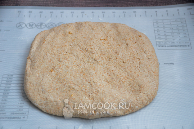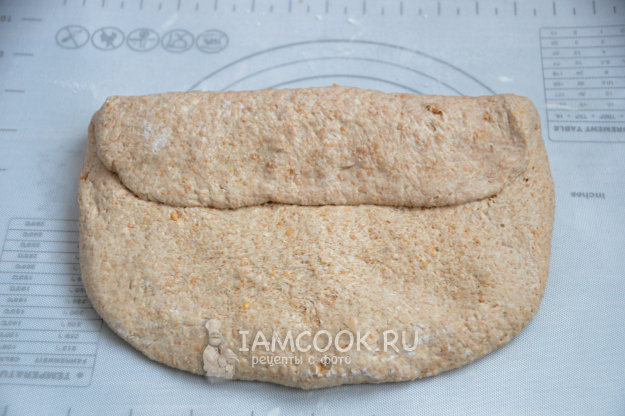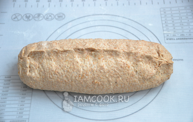 В три сложения сверните тесто в рулон. Защипните края теста, подкатайте заготовку хлеба, чтобы выровнять ее.