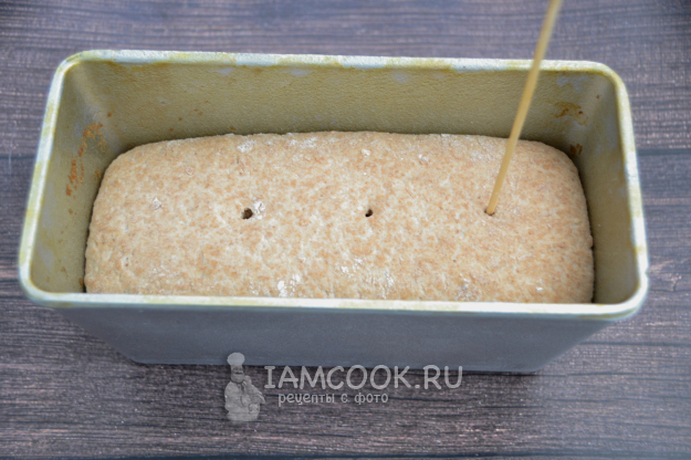 Разогрейте духовку до 250 градусов. Сделайте в хлебе несколько проколов деревянной шпажкой.