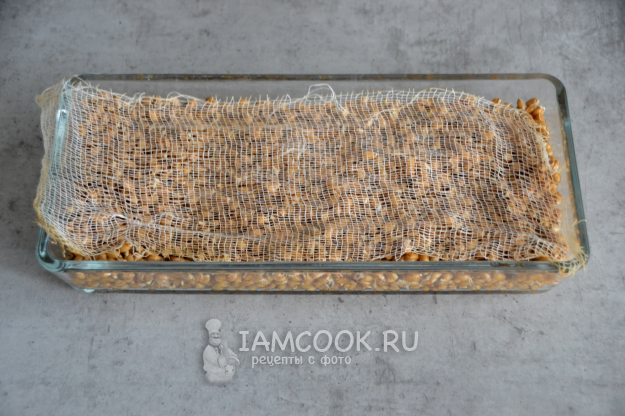 Можно накрыть не пленкой, а кусочком марли или бинта, залить водой, оставить еще на сутки для дальнейшего проращивания.