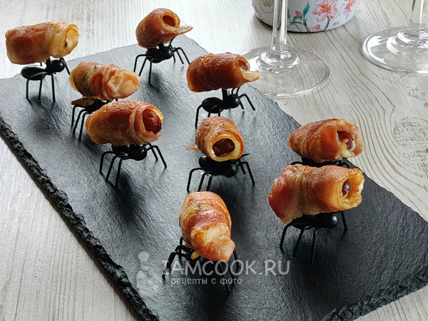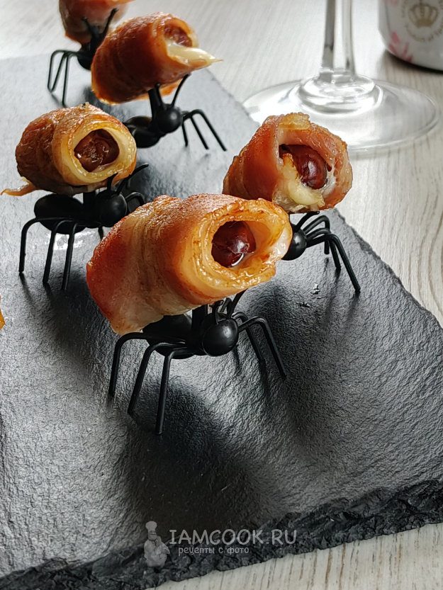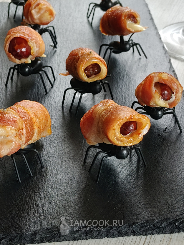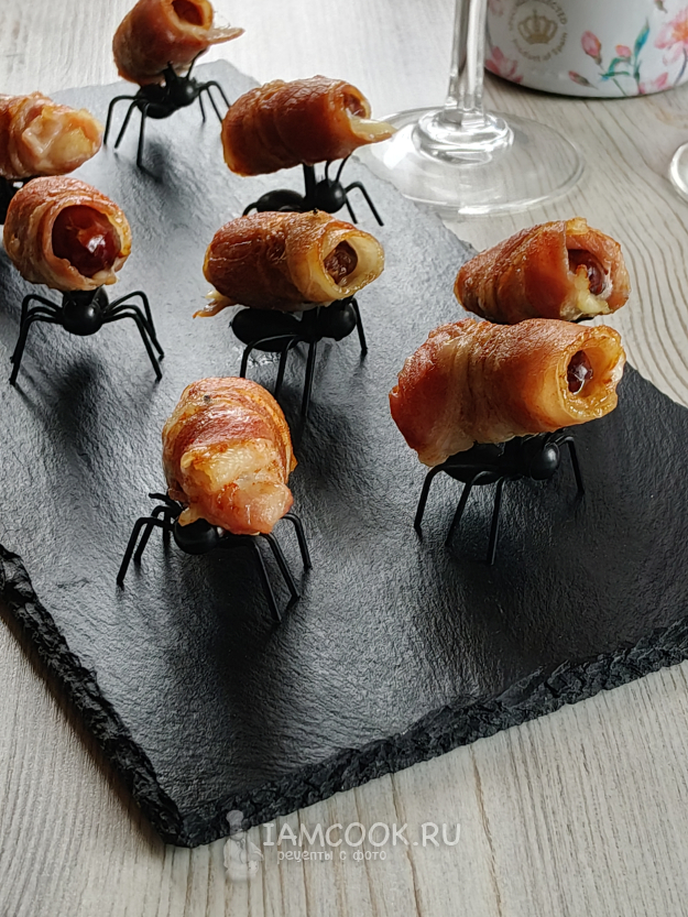 Финики в беконе с сыром подавать лучше в теплом виде.