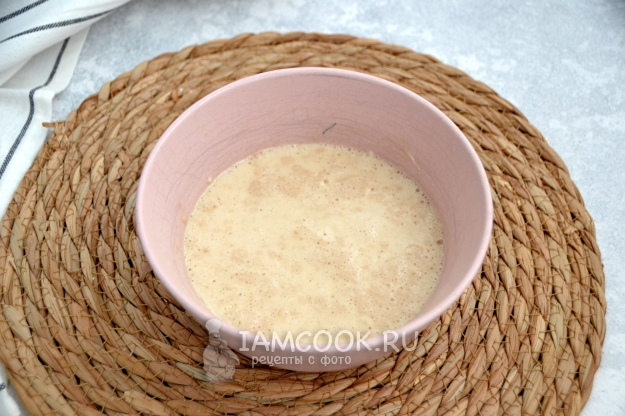 Дрожжи активировались: на поверхности опары появилась пенка. Можно замешивать тесто.