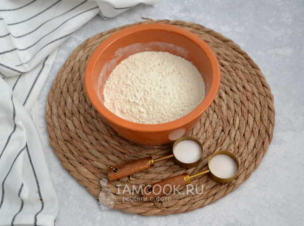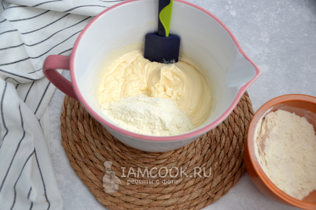 Смешайте муку, ванильный сахар и разрыхлитель.