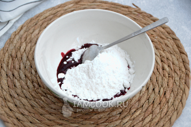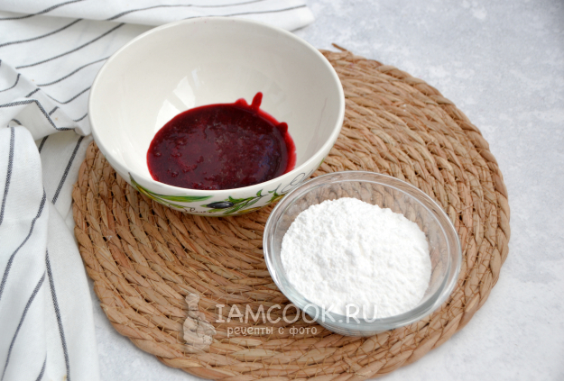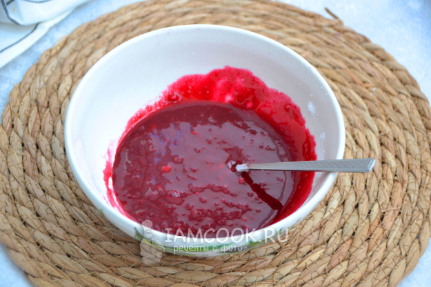 Смешайте ягодное пюре с сахарной пудрой до однородности. Ягодная глазурь готова.