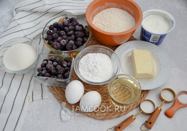 Ингредиенты для приготовления ягодного кекса на йогурте с ягодной глазурью соберите по списку к рецепту. Если используете замороженные ягоды, их можно не размораживать заранее. Сразу включите духовку на разогрев в режиме "верх-низ" до 180 градусов.