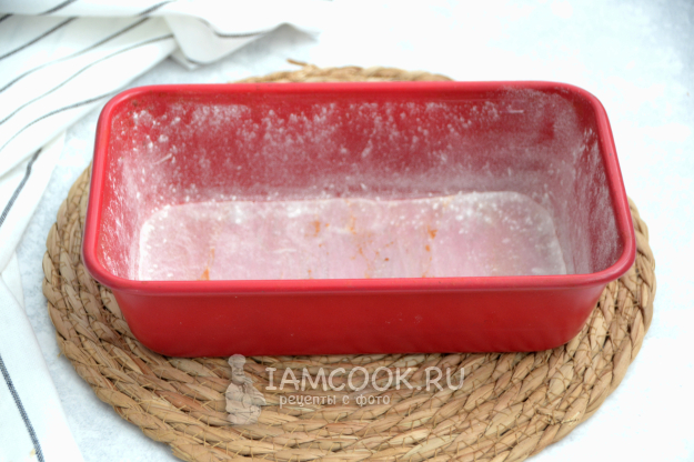 Подготовьте форму для выпечки. Дно формы застелите пергаментом, бока смажьте сливочным маслом, слегка присыпьте мукой, излишки муки стряхните.
