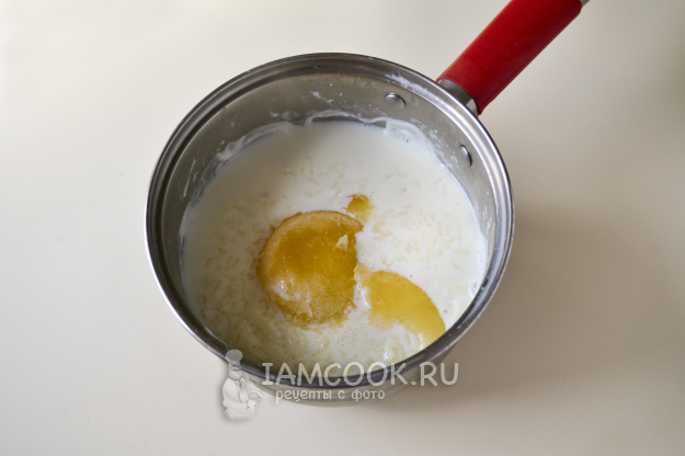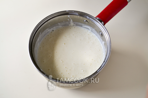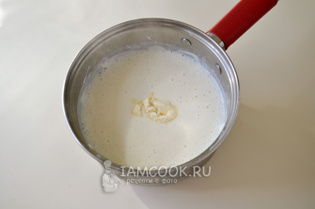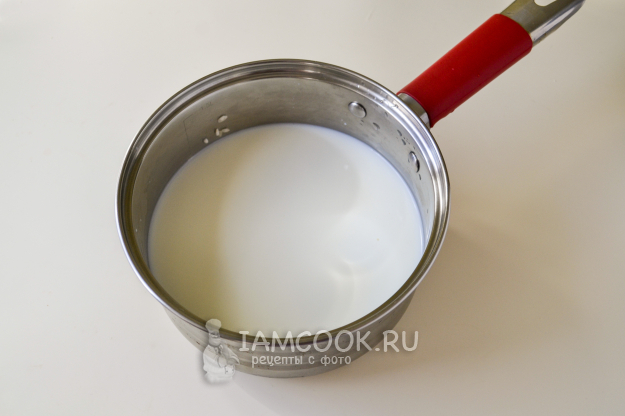 Влейте в сотейник молоко и поставьте на огонь.