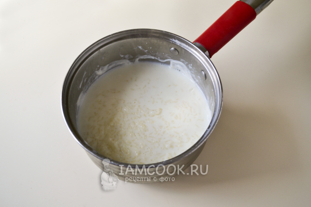 Доведите молоко до кипения, сделайте огонь минимальным и варите до полной готовности рисовой крупы. Должна получиться каша-размазня, рис должен быть полностью разварен.