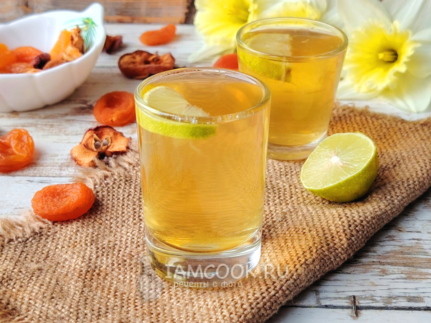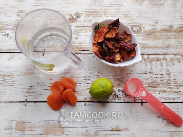 Собрать по списку продукты для компота с лаймом, курагой и сушеными яблоками.