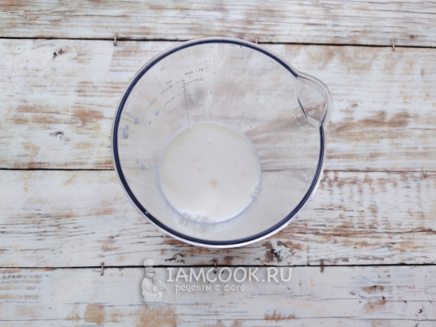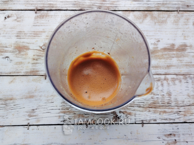 Блендером тщательно взбить смесь до образования объемной пенки, на взбивание уйдет около 5 минут.