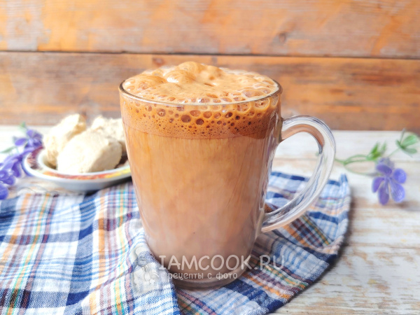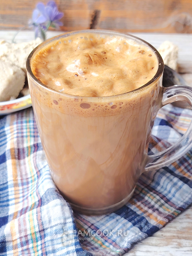 Разлить капучино с халвой по чашкам, подать к столу. Сверху по желанию напиток можно украсить раскрошенной халвой, тертым горьким шоколадом или дроблеными орешками. Приятного аппетита!