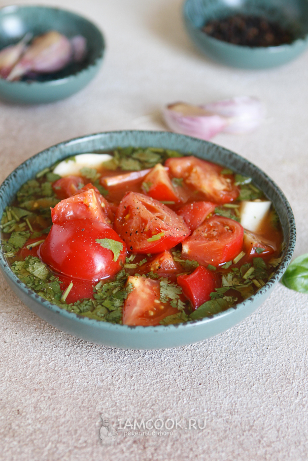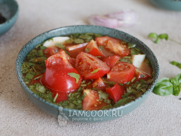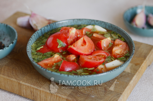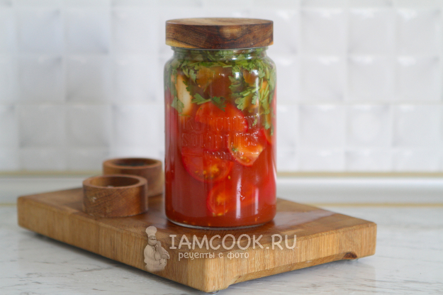 Через сутки помидоры готовы. Подавайте их вместе с маринадом. Поверьте, это настолько вкусно, что вы еще не раз и не два будете готовить помидоры в томатном соусе по этому рецепту.