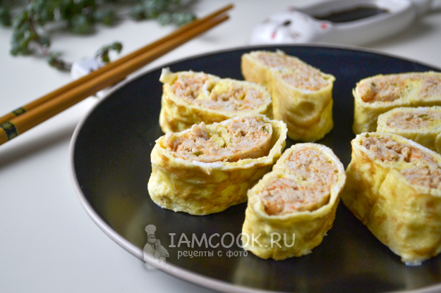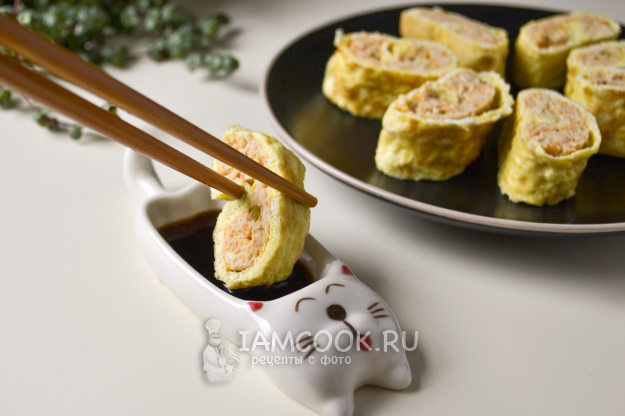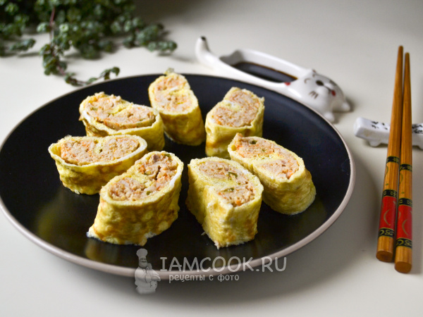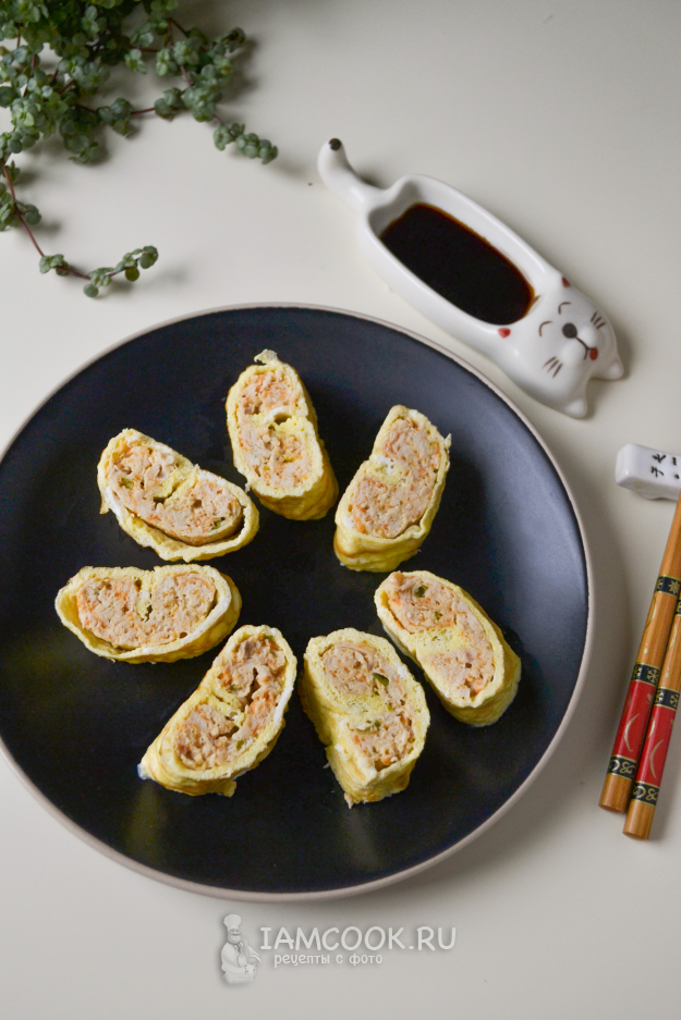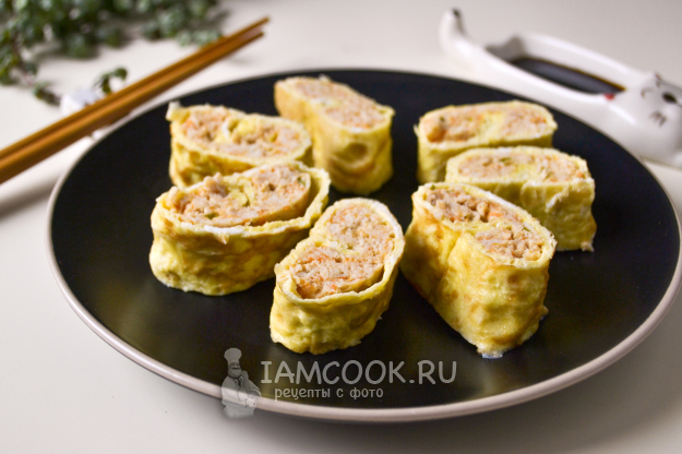 Китайские яичные рулетики желаний с фаршем готовы. Подавайте их с соевым соусом.
