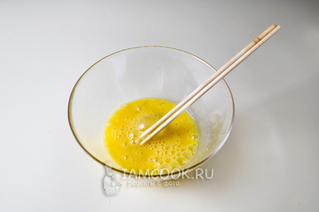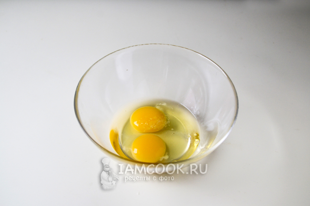 Для приготовления яичных блинов разбейте в миску яйца, посолите.